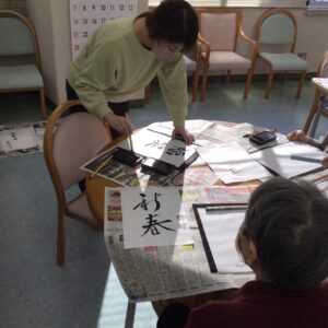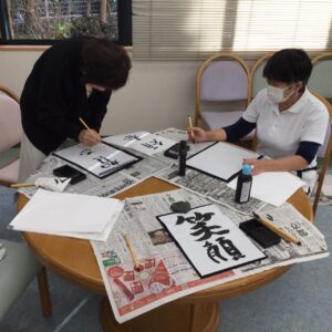 今年最初の書初めでは、皆さま思い思いの言葉を書かれ、真剣な表情の中にも楽しさがあふれていました。