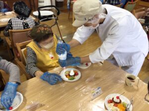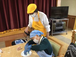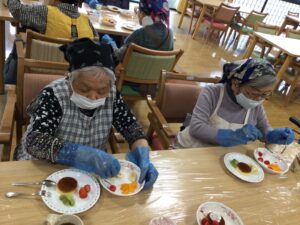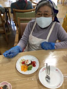 先日厨房との合同企画で、皆さまと一緒に「プリンアラモード作り🍮」を行いました!