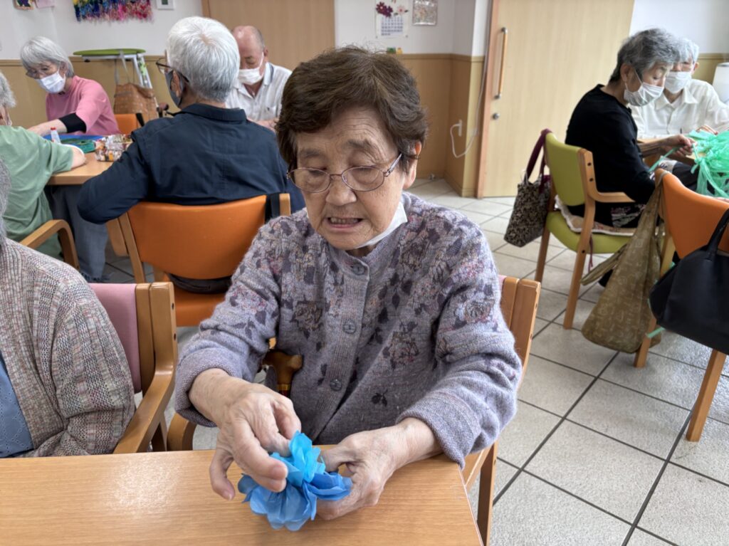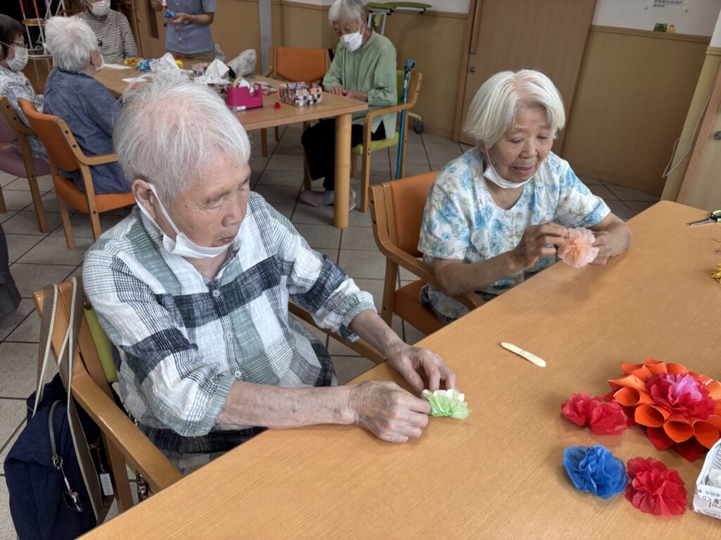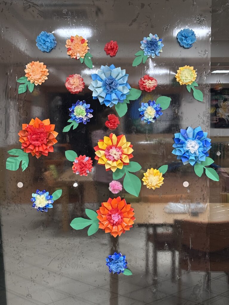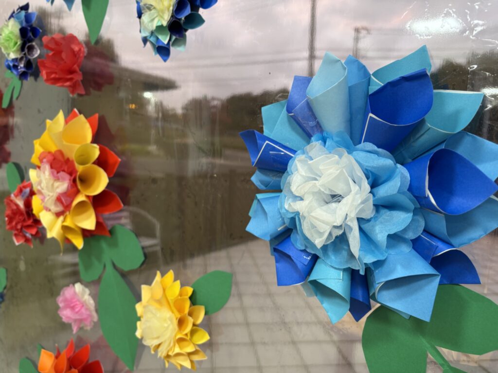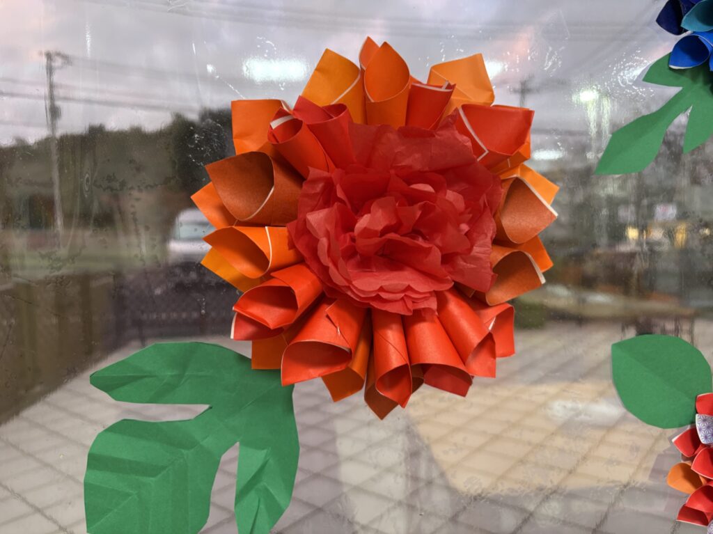 花びらは小さく切った折り紙を丸めました。細かい作業ありがとうございます。