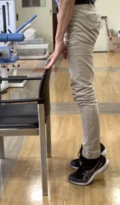椅子の背もたれや壁に手をついて、安定した姿勢をとります。