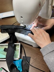 裏面が滑り止め素材になっているため、ミシンが滑って使えず、結局まさかの「全面手縫い」に!