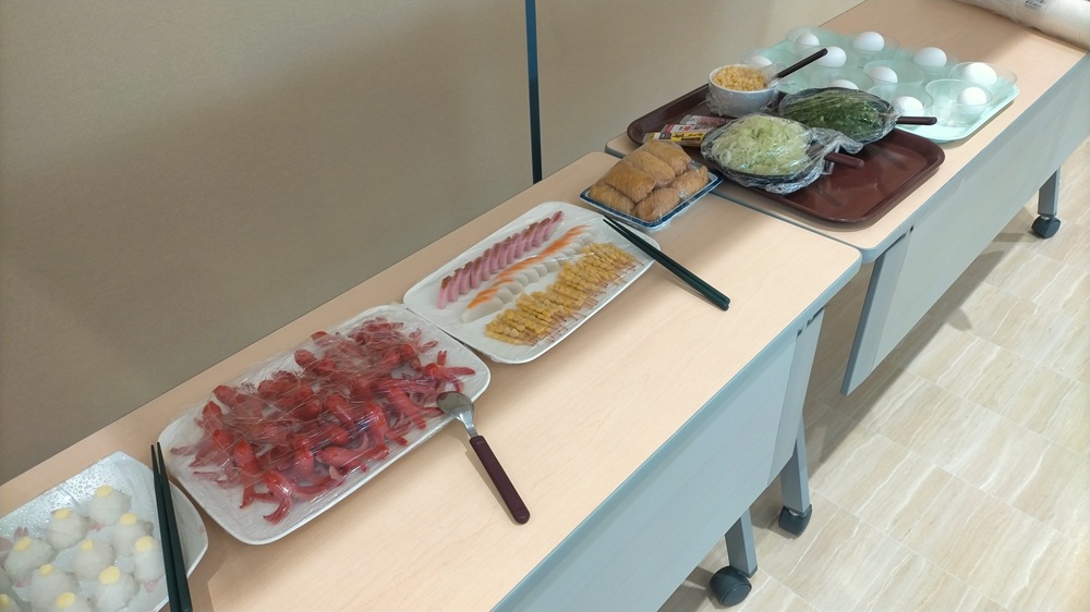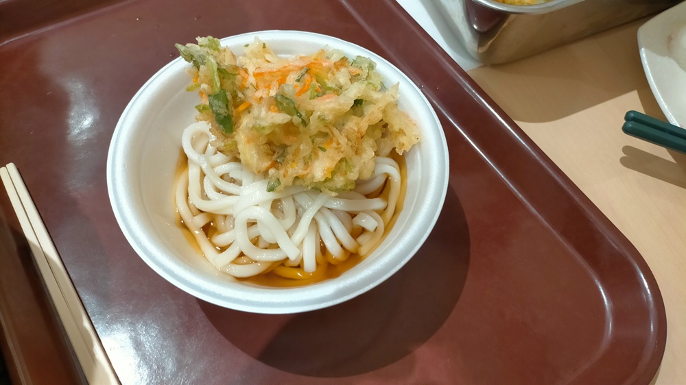 今回のメニューはうどん!!ちとせ稲毛特製のかき揚げを乗せて召し上がっていただきました。