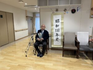 先日、ちとせ北本では昭和100年を記念して、長年教職につかれていた入居者様がご自分の人生や戦争体験、なぜ教職を志したかなどを「昭和100年史」として講演会を行ってくださいました。