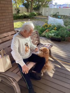 三山園自慢の広いウッドデッキでご面会です🌞